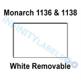 112,000 Monarch compatible 1136/1138 White Removable Labels. Full case w/8 ink rollers.